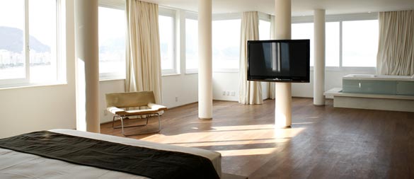 Погледнете го овој преубав луксузен апартман сместен во срцето на Рио Де Женеиро. Апартманот важи за еден од најубавите на бразилското крајбрежје. Шесте простории на објектот се опремени со внимателно избрани парчиња модерен мебел и декоририрани со фантастични бразилски скулптури и растенија. Доминира белата боја која влева оптимизам кај луѓето кои престојуваат во него, а дрвениот бродски под и дава пријатен шмек на целата атмосфера.