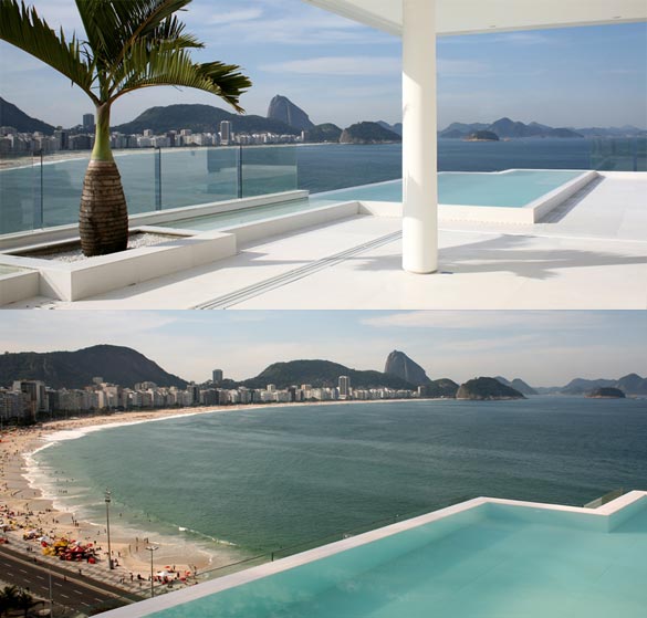 На кровната тераса има огромен базен, палми и лежалки кои гледаат директно кон преубавата Копакабана плажа. Ноќе, од терасата имате чувство дека Рио де Жанеиро Ви е на дланка, уживате во погледот на илјадниците светилки и морето, живеете во ритамот на градот.