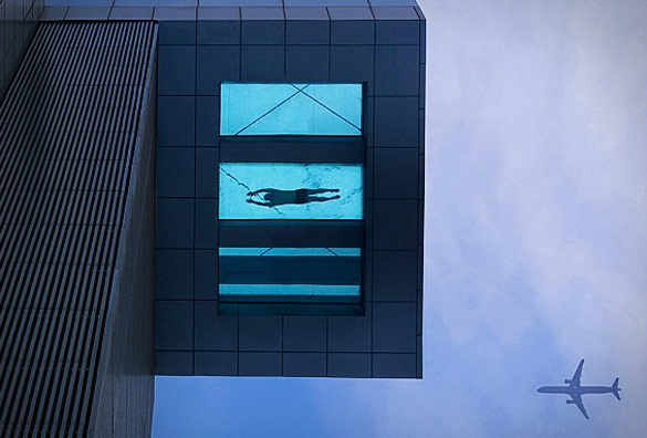 Базенот со стаклено дно, кој дефинитивно ќе ви го одземе здивот, се наоѓа во хотелот “Holiday Inn” во Шангај. Интересно искуство за гостите на овој хотел е можноста да пливаат „во воздух“, односно на 24-ти кат. Плиткиот дел од базенот се наоѓа во внатрешноста на хотелот, а пливањето во подлабокиот дел води кој стакленото дно. Убаво искуство, но само за оние кои се доволно храбри. 🙂