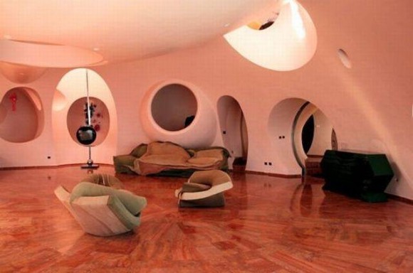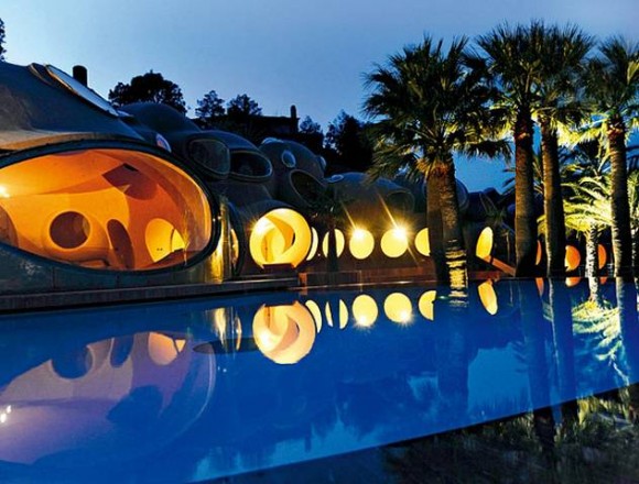 Погледнете ја оваа неверојатна хациенда со несекојдневно архи решение на познатиот француски стилист Pierre Cardin. Хациендата носи име “Palais Bulles”. Таа е свртена кон канскиот залив, се протега на површина од 1200 метри квадратни, и водена површина (базени и фонтани) со вкупна зафатнина од 8500 метри квадратни.