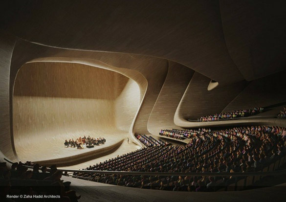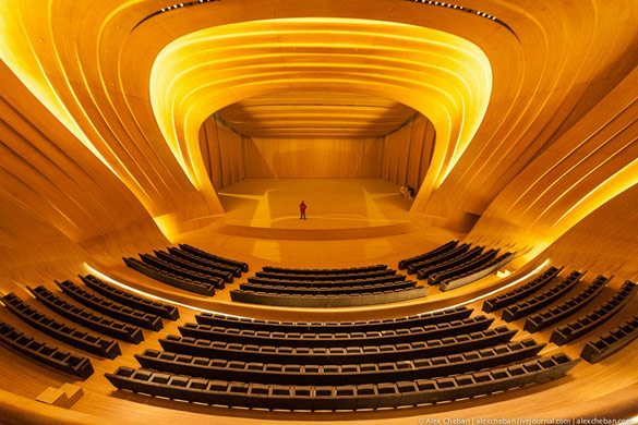 Zaha Hadid е веројатно најпознатата жена-архитект во ова време. Погледнете го нејзиниот последен проект за концертната сала на Домот на култутрата во Баку, Азербеџан. Салата го носи името Geidar Aliev (именувана е по покоен поранешен претседател на Азербеџан). Апсолутната хармонија на мазни линии создава илузија на вечност. Концертната сала е целосно изработена од природно дрво. Истата има површина од 110 000 m2. Центарот за култура содржи музеј, библиотека, конференциска сала, како и концертна сала.