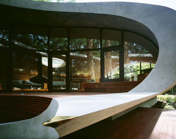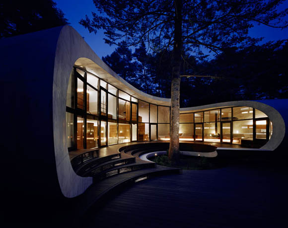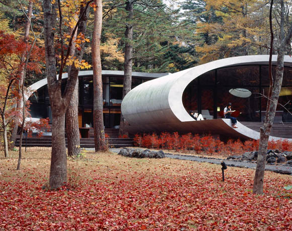 Ова интересно архитектонско решение, се наоѓа во шумата Каруизава, во Јапонија. Интересниов архитектонски дизајн е дело на јапонскиот архитект Котаро Иде. Двокатната форма на школка има структура која ја прави различна од околните пештери и карпи. Сепак, нејзината огранска форма, овозможува оваа куќа да се вклопи во пејзажот. Куќата и во внатрешноста ја има истата форма како и однадвор. Бидејќи ѕидовите се криви, посветено е големо внимание на дизајнирање на детали кои ќе овозможат комфор и перформанси на престој на ниво.