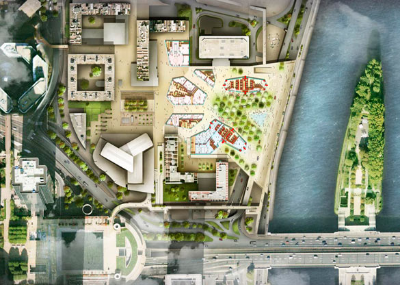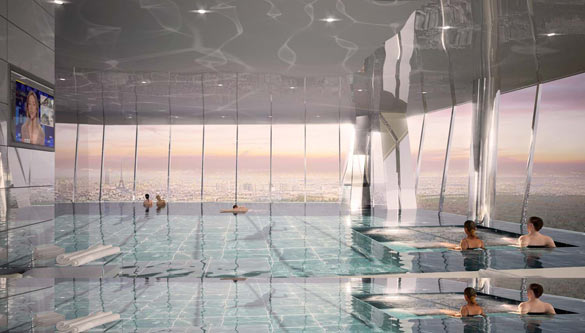 “Hermitage Plaza ќе создаде нова заедница на источната страна на La Defense, притоа пренесувајќи го начинот на живот од Централен Париз во новиот бизнис регион, со паркот и наредените кафулиња и ресторани предвидени покрај реката Сена.” – објаснуваат од компанијата “Фостер и партнери”.