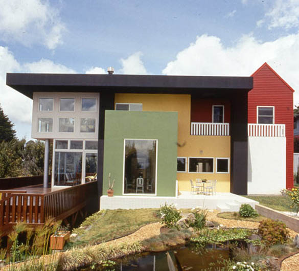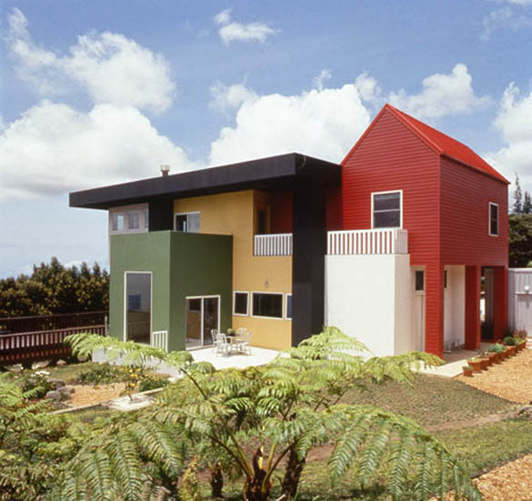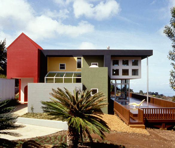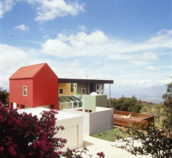 Куќава која ви ја прикажуваме е домот / хациендата на Хаваи на брачната двојка Adrian Olabuenaga и Lesley Bailey, дело на архитектот Ettore Sottsass. Со оглед на тоа дека и тие самите се добро познати во областа на архитектурата и дизајнот, цело време соработувале со архитектот во врска со обликувањето и дизајнот на нивниот дом. Куќата наликува како делови склопени од детски играчки, што соодветствува на самиот хавајски остров, богат со колрит и забава. Мебелот со кој е опремена хациендата е делумно дизајн на Sottsass, како и на самиот Olabuenaga, а присутни се и парчиња мебел карактеристични за традиционалната хавјска куќа. Уживајте.