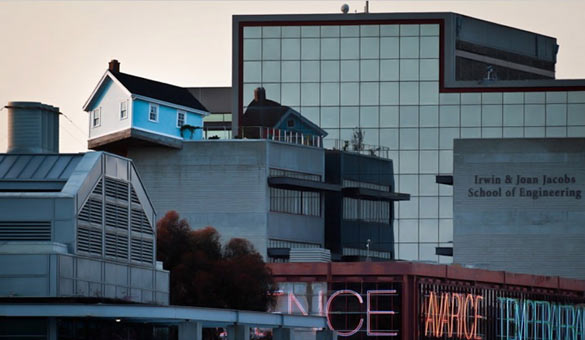 Корејскиот уметник Do Ho Suh е авторот на оваа впечатлива куќа која ги привлекува погледите на сите минувачи. Проектот насловен „Паднатата ѕвезда“, го хипнотизира локалното население и туристите со својата необична положба. Куќата е изградена на работ на 7 катна зграда во кампусот на Универзитетот Сан Диего во Калифорнија, а освен тоа има прекрасна градина.