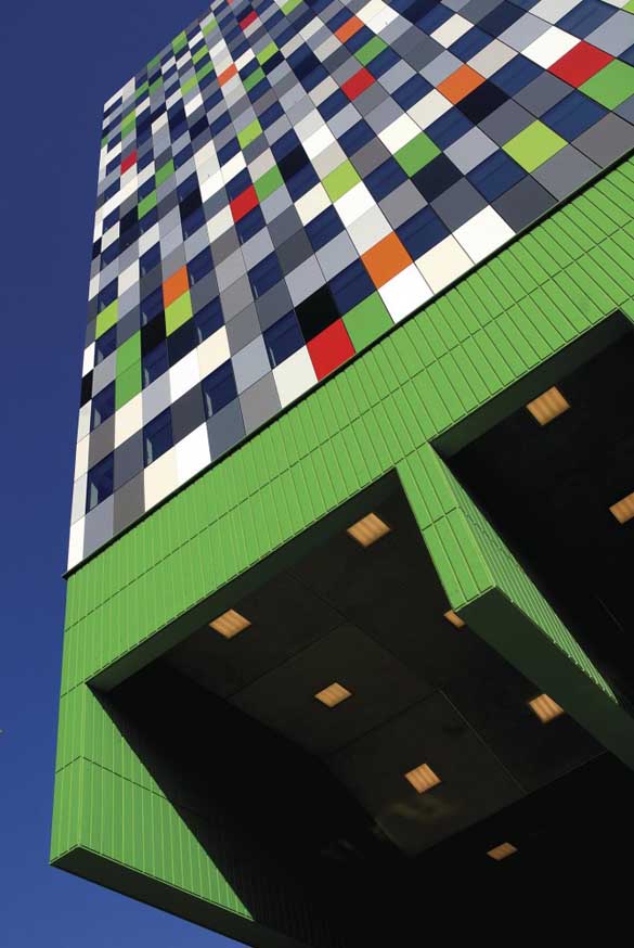 Со уникатниот дизајн на фасадата објектот е еден од повпечатливите во Утрехт, и е патерн каде што се повторуваат неколку бои, а меѓу нив се и прозорците, кои се со иста димензија со полињата, кои инаку се алуминиумски панели. Пред и околу зградата има поставено содржини за забава на студентите, како оваа интересна нишалка која е поставена на сликите подолу.