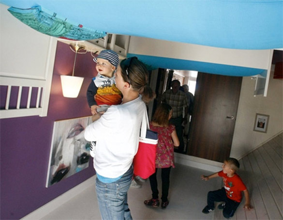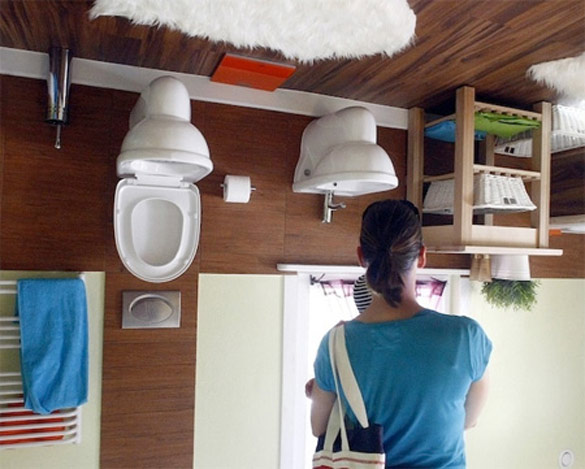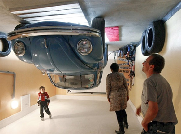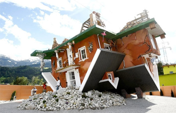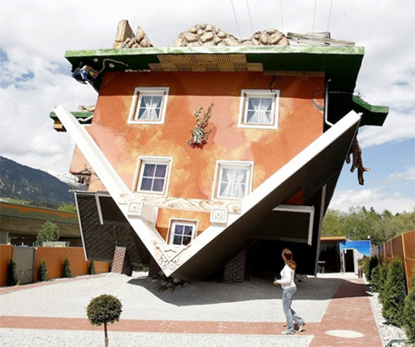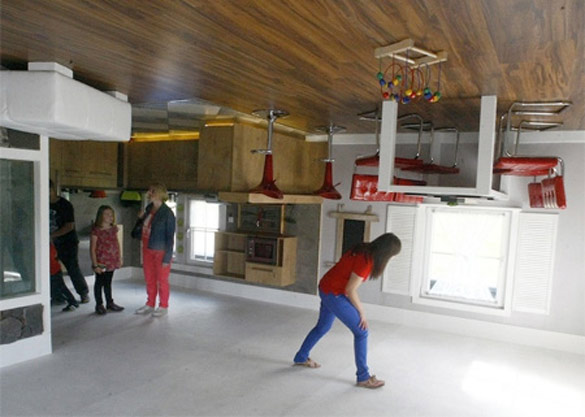 Навистина уникатна куќа е оваа куќа во која целиот мебел е прикачен на таванот. Дури и автомобилот во гаражата стои наопаку. Дизајнери и проектанти на оваа интересна куќа се полските архитекти Irek Glowacki и Marek Rozanski. Нивната задача била да создадат нова туристичка атракција во Терфенс, Австрија. За реализација на овој забавен проект биле потребни осум месеци. Фотографиите кои ќе ги погледнете се дело на Dominic Ebenbichler.