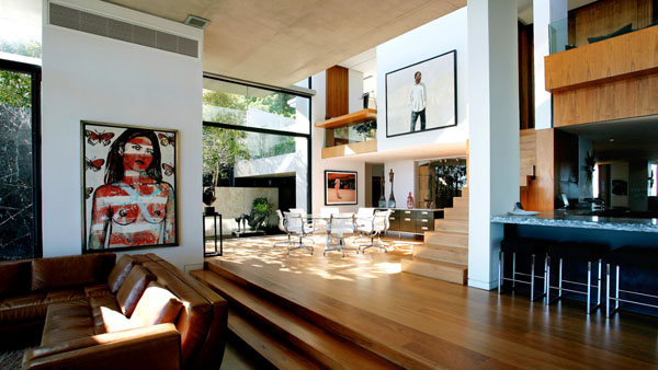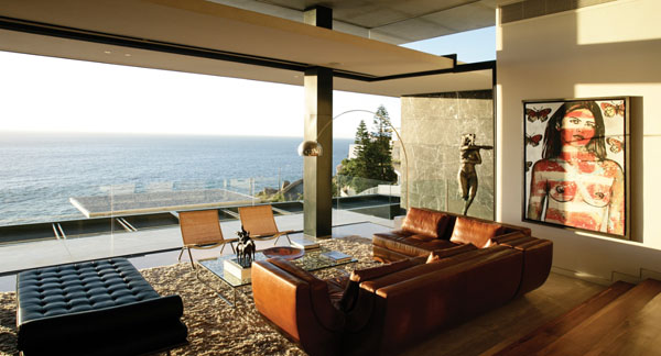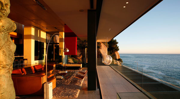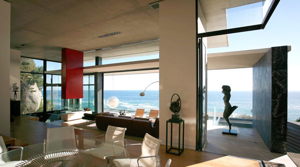 Колосалните прозорци од под до плафон ги заматуваат линиите помеѓу внатрешноста и надворешноста, со што делови од околината на куќата се чинат попитоми. Океанот и високиот гребен на другата страна на куќата личат поголеми, па архитектите ја искористиле предноста на погледите и визурите со креирање на мултиплицирани надворешни простори.