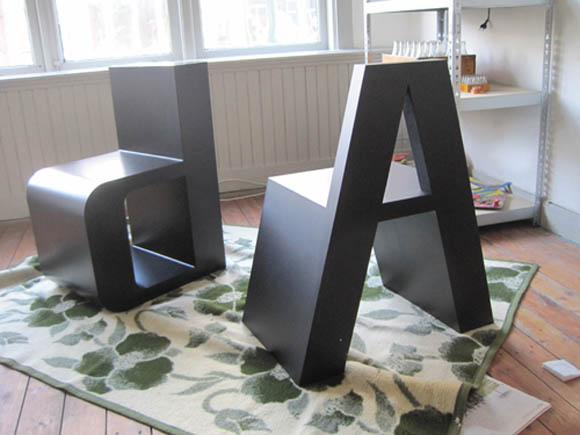 Креатор на овие алфабетски столчиња е графичкиот дизајнер Roeland Otten. Столчињата ја следат линијата на неговиот омилен фонт. Истите се достапни во малопродажба во две варијанти: со височина од 46cm или 80cm.