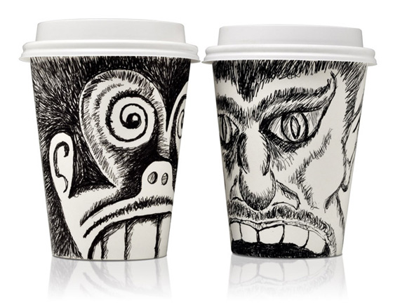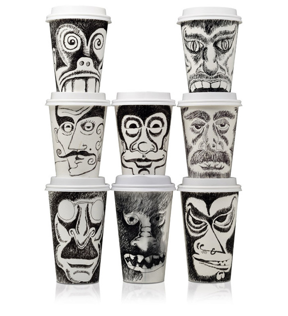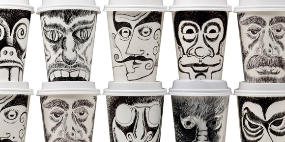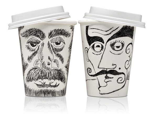 Jess Giambroni од дизајн студиото DDW при еден деловен состанок почнал со пенкалото да шара на својата бела пластична чаша полна со кафе. Токму од таму потекнува идејата да се создадат овие кул “coffeе 2 go” хартиени чаши со апликации со различни изрази на лицето и приказ на емоции. Интересно!!