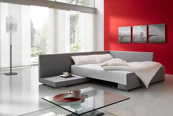 После троседот кој се трансформираше во легло, ви претставуваме уште едно парче мебел кое се трансформира. Овојпат, станува збор за аголна гарнитура која може да се трансформира во удобен брачен кревет. Зависно од потребата, овој кревет има две намени.