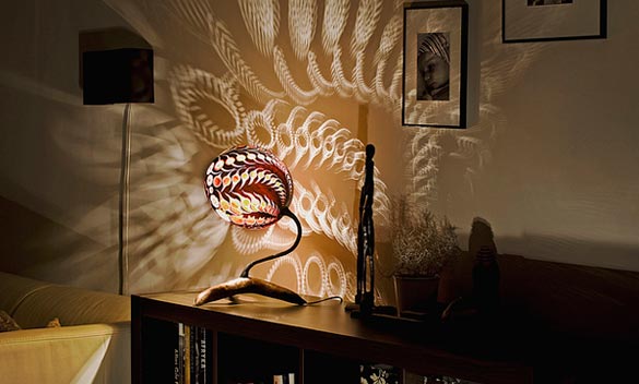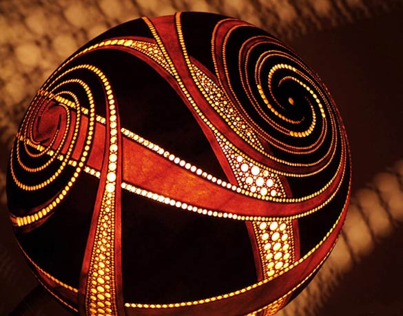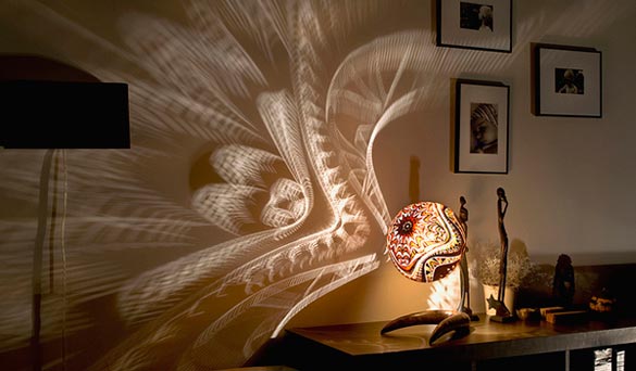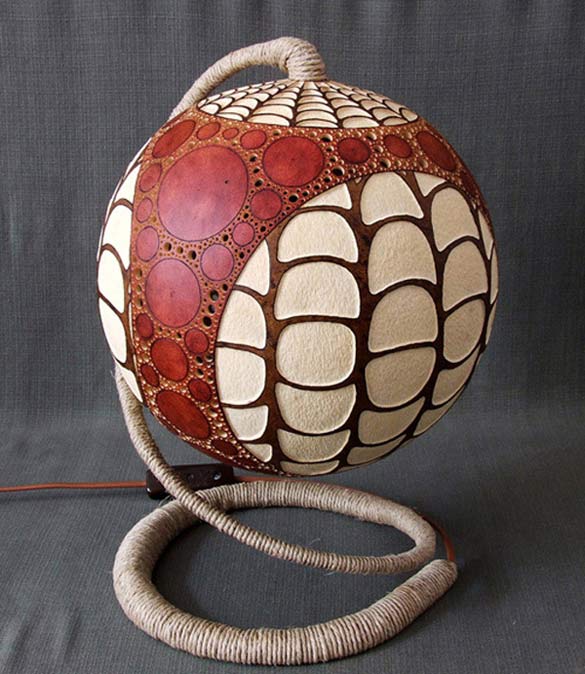 Компанијата Calabarte неодамна создаде една интересна линија столни ламби, наречени Gourd Lamps (Ламби од тиква). Името произлегува од фактот дека овие прекрасни ламби се изработени од кората на вистински тикви од Сенегал, а егзотичниот дизајн е постигнат со внимателно одбрани исушени парчиња од тиква, врз кои со длабење ,плитко и длабоко, се добива финалниот продукт. Перфорираната кора е таа која светлината од обичната сијалица ја пренесува на ѕидот во вид на егзотични шари, давајќи му на просторот една мистичност и ориентален дух. Погледајте за што станува збор!