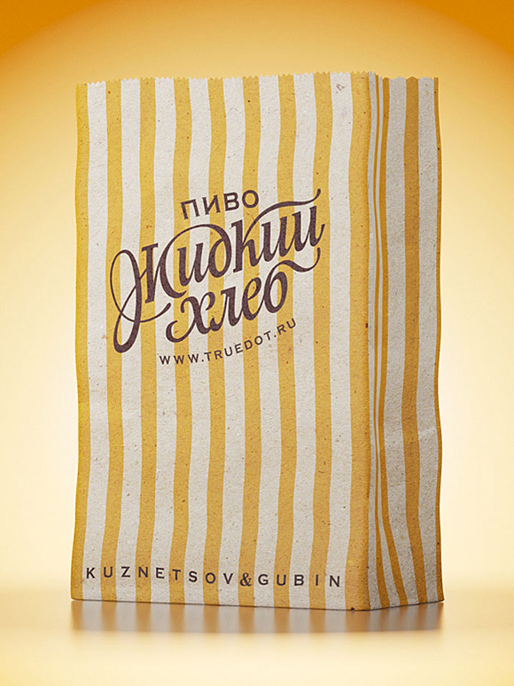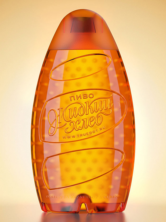 На прв поглед речиси е невозможно да погодите нека ова е пиво. Судејќи според амбалажата, првата асоцијација би била дека станува збор за некаков хигиенски препарат. Креативното пакување на руското пиво “Жидкин Хлеб” е на дизајнерот Павел Губин.