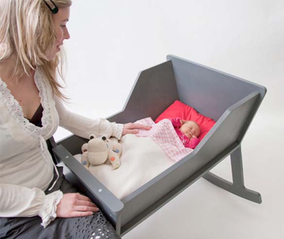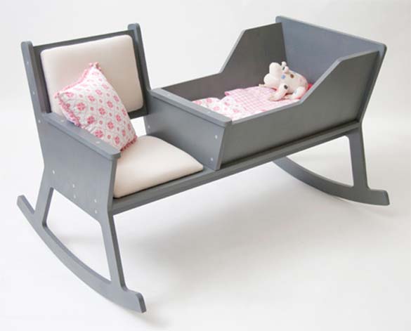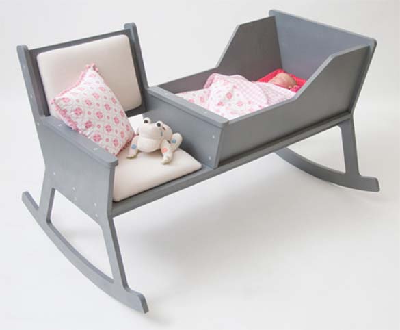 Студиото Ontwerpduo е дијзанер на оваа модерна стол-лулка со интегрирана колевка за бебе. Овој брилијантен и корисен дизајн им овозможува на родителите да седнат на столот и нежно да го лулаат бебето за да заспие. Лулката не е тешка за изработка, па ако ви се допаѓа консултирајте се со столар и порачајте си.