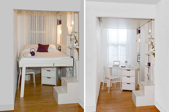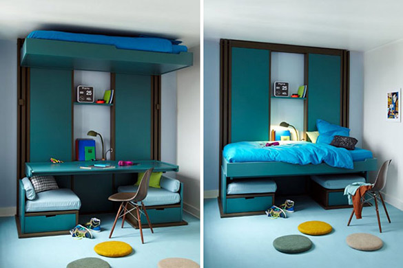 Espace Loggia од Франција нудат поинакво решение за позиционирање на креветите. Наместо стандарден кревет кој ќе биде постојано поставен на едно место во собата, тие нудат систем кој е функционален, заштедува простор и убаво изгледа. Предизвиците на сите дизајнери се креирање решенија за мал простор. Со овие кревети се овозможува алтернативно користење на просторот на кој вообичаено би бил поставен статичен кревет.