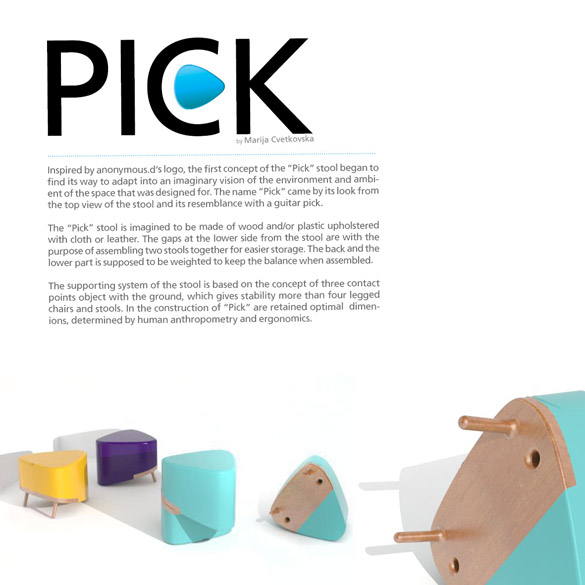 На 15-ти овој месец, Марија го освои второто место на конкурсот распишан од anonymous.d од Њујорк за дизајнот на Pick Stool. Ова ниско столче е дизајнирано за уредување на просторот на mosza студиото во сопственост на основачот на anonymous.d. Љубовта кон триножните столчиња може да се забележи и на концептот Pick чија логика на балансирање е да се држи на три контактни точки со подот. Функционалноста е зголемена со отворите кои се наоѓаат на долниот дел од столчето кои служат за да се прави спојување со ногарките на второ столче за полесно складирање кога не се во употреба.