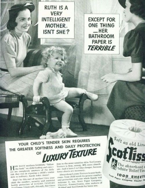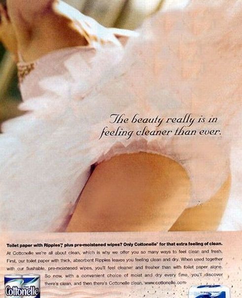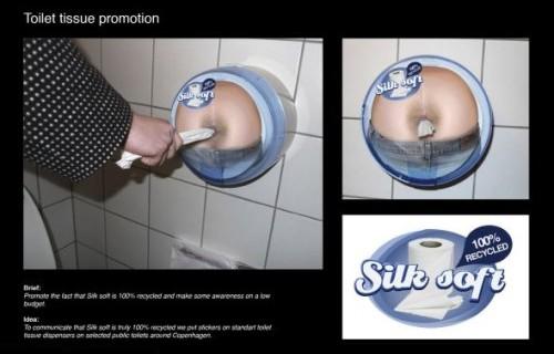 Погледнете неколку најкреативни, а можеби и по малку чудни постери и рекламни кампањи за тоалетна хартија од поново, а и од постаро време. Некои се интересни, некои се помалку морбидни (како на пример фактот дека хартијата ја извлекувате од принт на кој има прикажано нечија друга задница), а некои пак се обидуваат да ја прикажат ‘секси’ страната на користењето на тоалетна хартија, ако воопшто постои таква. 🙂