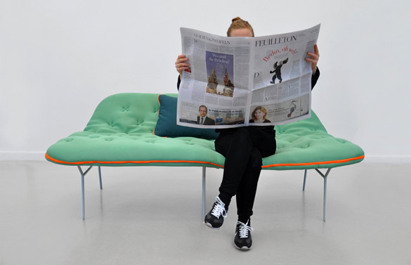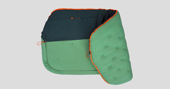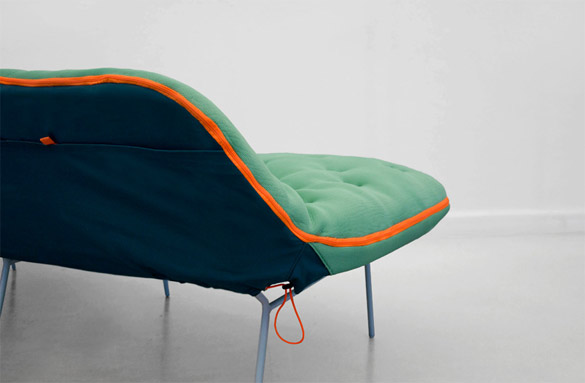 Модерната софа со интегрирана вреќа за спиење е дизајнирана од Stephanie Horing. Меката и удобна вреќа за спиење ќе ве стопли во текот на студените зимски ноќи. Во текот на денот, можете да го трансформирате во тросед. Совршено парче мебел за секоја дневна соба.