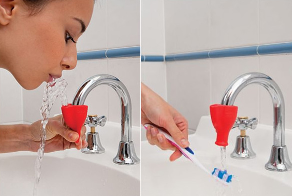 Dreamfarm се производителите на овој функционален предмет ТAPI.,Одличен е за оние кои мразат да се наведнуваат до чешмата додека мијат заби. Тој го трансформира обичниот млаз вода во забавна фонтана, без да го наруши нормалниот тек на водата. Единствено треба да се притисне долниот дел и водата го менува текот.
