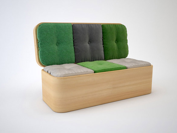 Јулија вели: “Живеам во мал стан во кој нема простор за многу парчиња мебел. Токму таа ситуација беше мотив да дизајнирам мултифинкционално парче мебел кое се адаптира според моменталните потреби на станарите. Имено, креирав тросед кој за време на оброците лесно го трансформираме во маса за јадење со шест столчиња. По однос на ергономијата, дава максимална удобност и практичност на корисниците.“