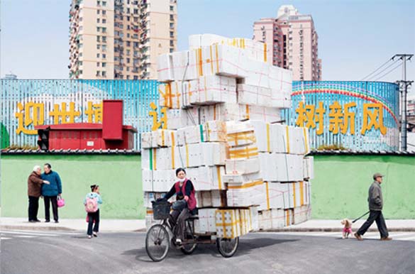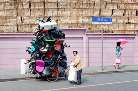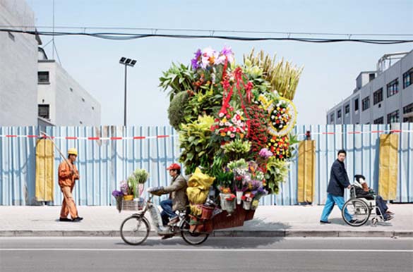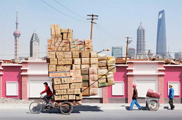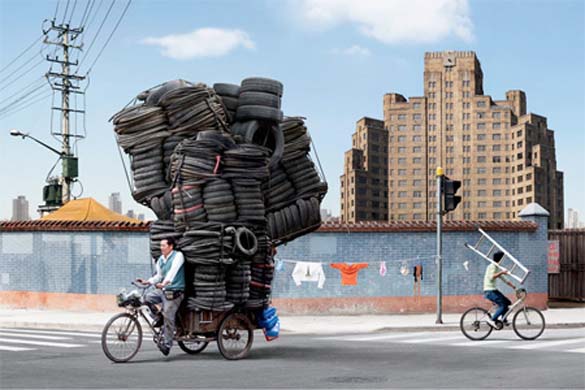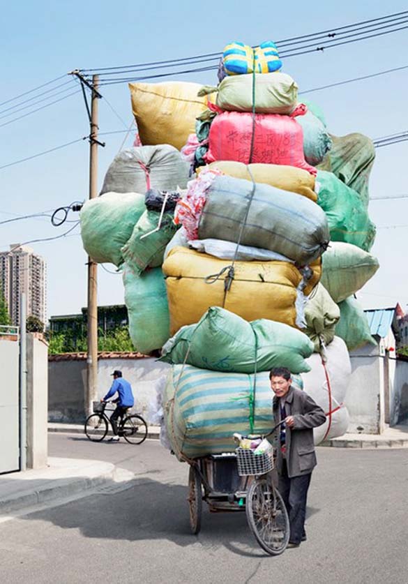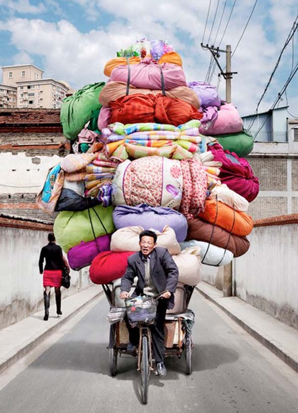 Пасијата на францускиот фотограф Ален Делорм не е обработка на фотографии во Photoshop. Напротив, тој ужива во фотографирање на шарени портрети. Овој пат тоа се фотографии од работниците во Шангај, кои неверојатно ги користат велосипедите за транспорт на купови предмети.
