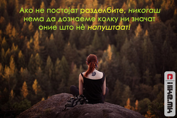 28.01.2012 /Постирано во Мисла на денот /Автор: Елизабета Илковска /Оставете коментар Ако не постојат разделбите… Ако не постојат разделбите… Кликнете ТУКА за да ги погледнете нашите денешни содржини. Станете наш facebook фан. Станете наш facebook фан. Ви Благодариме! « Претходно Само ТИ избираш! Следно » Твојата тишина…