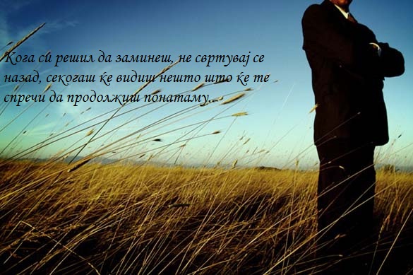 09.08.2011 /Постирано во Мисла на денот /Автор: Елизабета Илковска /Оставете коментар Кога си решил да заминеш.. Кога си решил да заминеш.. Кликнете ТУКА за да ги погледнете нашите денешни содржини. Facebook FAN page Станете наш facebook фан. Ви Благодариме! « Претходно Кога некој си оди од твојот живот… Следно » Не го троши времето..