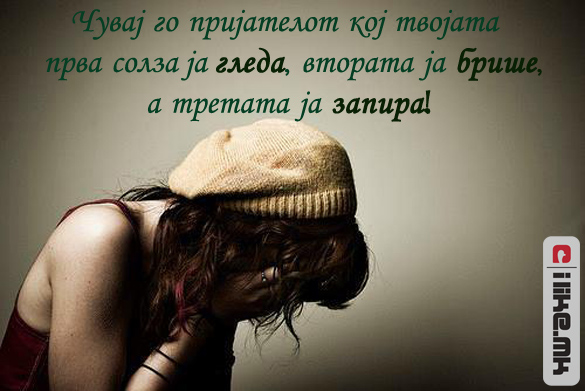 22.04.2012 /Постирано во Мисла на денот /Автор: Елизабета Илковска /Оставете коментар Чувај го пријателот кој… Чувај го пријателот кој… Станете наш facebook фан. Ви Благодариме! « Претходно Не го посветувај своето време… Следно » За да ја оствариш својата цел…