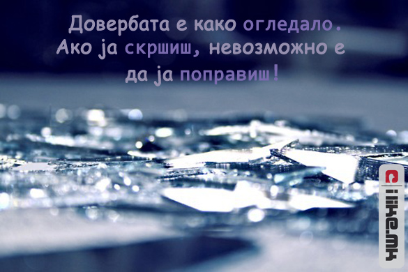 13.05.2012 /Постирано во Мисла на денот /Автор: Елизабета Илковска /Оставете коментар Довербата е како огледало Довербата е како огледало… Кликнете ТУКА за да ги погледнете нашите денешни содржини. Станете наш facebook фан. Станете наш facebook фан. Ви Благодариме! « Претходно Вистина или лага? Следно » СЕГА или НИКОГАШ!