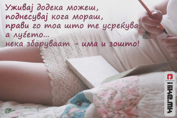 01.06.2012 /Постирано во Мисла на денот /Автор: Елизабета Илковска /1 коментар Луѓето нека зборуваат… Уживај додека можеш… Станете наш facebook фан. Ви Благодариме! « Претходно Кога им требаш… Следно » Сè додека не ја заборавиш…