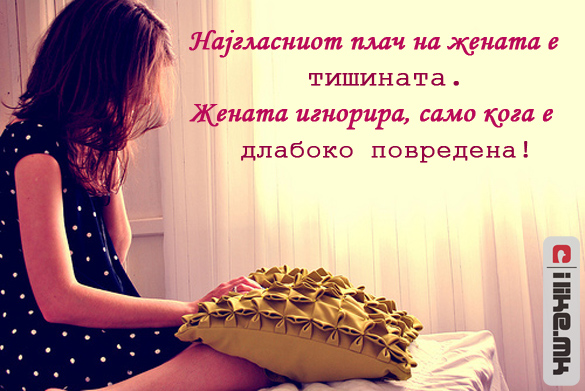 Жената секогаш заслужува внимание и почит и никогаш не смее да се повреди на ниту еден начин. Дури и кога молчи таа е силна на свој индивидуален и единствен начин. Во срцето и душата.