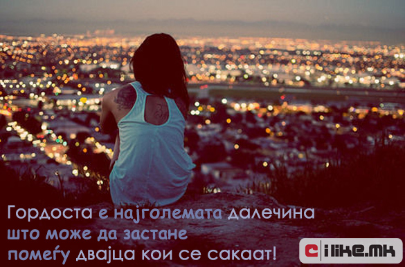 28.05.2012 /Постирано во Мисла на денот /Автор: Елизабета Илковска /Оставете коментар Најголемата далечина… Гордоста е најголемата далечина… Кликнете ТУКА за да ги погледнете нашите денешни содржини. Станете наш facebook фан. Станете наш facebook фан. Ви Благодариме! « Претходно Сè додека не престанеме… Следно » Не постојат случајни средби