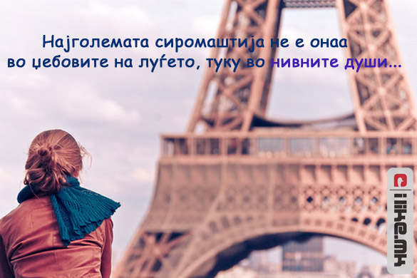 19.02.2012 /Постирано во Мисла на денот /Автор: Елизабета Илковска /Оставете коментар Најголемата сиромаштија… Најголемата сиромаштија не е онаа… Кликнете ТУКА за да ги погледнете нашите денешни содржини. Станете наш facebook фан. Станете наш facebook фан. Ви Благодариме! « Претходно На старото место… Следно » Најскапоцениот накит…