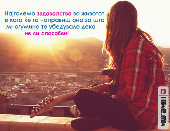 31.12.2011 /Постирано во Мисла на денот /Автор: Елизабета Илковска /Оставете коментар Најголемото задоволство во животот… Најголемо задоволство во животот е кога… Станете наш facebook фан. Ви Благодариме! « Претходно Приказната на твојот живот… Следно » Само еднаш се доживува вистинската љубов!
