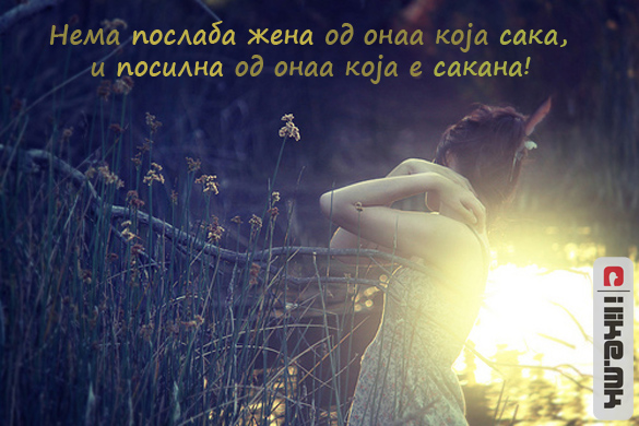 24.03.2012 /Постирано во Мисла на денот /Автор: Елизабета Илковска /Оставете коментар Најслаба и најсилна жена Нема послаба жена од… Кликнете ТУКА за да ги погледнете нашите денешни содржини. Станете наш facebook фан. Станете наш facebook фан. Ви Благодариме! « Претходно Кога жена ќе ти постави прашање… Следно » Си правиме безброј проблеми…