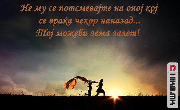 24.04.2012 /Постирано во Мисла на денот /Автор: Елизабета Илковска /Оставете коментар Не му се потсмевајте! Не му се потсмевајте… Кликнете ТУКА за да ги погледнете нашите денешни содржини. Станете наш facebook фан. Станете наш facebook фан. Ви Благодариме! « Претходно За да ја оствариш својата цел… Следно » Среќата е во малите нешта!