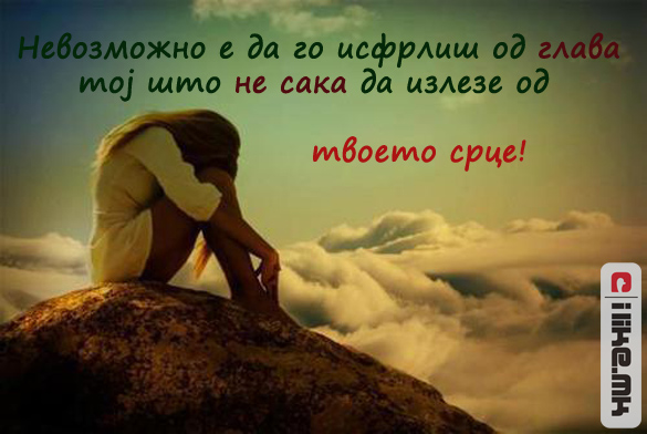 23.05.2012 /Постирано во Мисла на денот /Автор: Елизабета Илковска /Оставете коментар Невозможно е… Невозможно е да го… Кликнете ТУКА за да ги погледнете нашите денешни содржини. Станете наш facebook фан. Станете наш facebook фан. Ви Благодариме! « Претходно Во животот на една жена… Следно » Таму каде моето отсуство…
