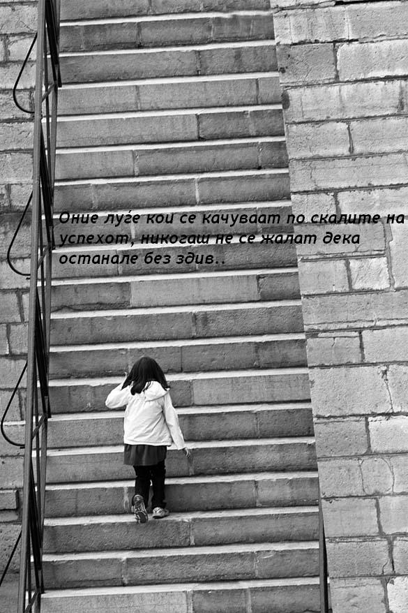 21.08.2011 /Постирано во Мисла на денот /Автор: Елизабета Илковска /Оставете коментар По скалите на успехот.. Оние луѓе кои се.. Кликнете ТУКА за да ги погледнете нашите денешни содржини. Facebook FAN page Станете наш facebook фан. Ви Благодариме! « Претходно Ако животот ти го земе она што го сакаш.. Следно » Не тргнувајте по најбезбедниот пат..
