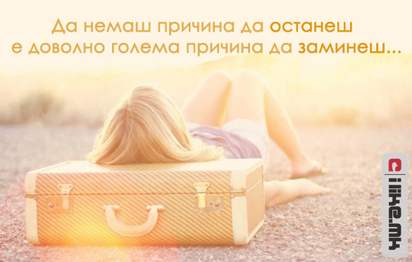 20.04.2012 /Постирано во Мисла на денот /Автор: Елизабета Илковска /Оставете коментар Да немаш причина да останеш… Да немаш причина да останеш… Кликнете ТУКА за да ги погледнете нашите денешни содржини. Станете наш facebook фан. Станете наш facebook фан. Ви Благодариме! « Претходно Oној момент кога ќе се запрашаш… Следно » Не го посветувај своето време…