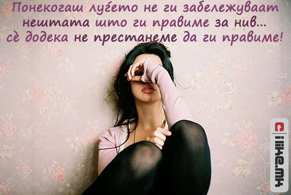 25.05.2012 /Постирано во Мисла на денот /Автор: Елизабета Илковска /Оставете коментар Сè додека не престанеме… Понекогаш луѓето не ги забележуваат… Кликнете ТУКА за да ги погледнете нашите денешни содржини. Станете наш facebook фан. Станете наш facebook фан. Ви Благодариме! « Претходно Таму каде моето отсуство… Следно » Најголемата далечина…