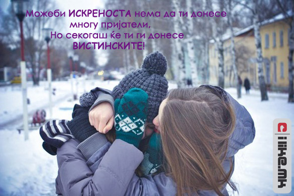 18.12.2011 /Постирано во Мисла на денот /Автор: Елизабета Илковска /Оставете коментар Секогаш вистински пријатели! Можеби искреноста нема да ти донесе… Кликнете ТУКА за да ги погледнете нашите денешни содржини. Станете наш facebook фан. Станете наш facebook фан. Ви Благодариме! « Претходно Зборовите и времето… Следно » Луѓето што ти се потребни…