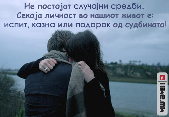 29.05.2012 /Постирано во Мисла на денот /Автор: Елизабета Илковска /Оставете коментар Не постојат случајни средби Не постојат случајни средби… Кликнете ТУКА за да ги погледнете нашите денешни содржини. Станете наш facebook фан. Станете наш facebook фан. Ви Благодариме! « Претходно Најголемата далечина… Следно » Зборовите немаат моќ да те повредат…