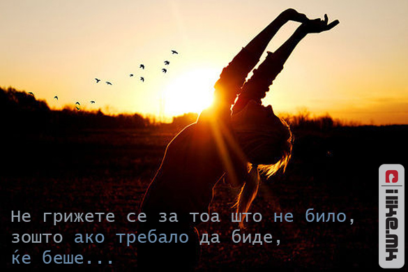 07.05.2012 /Постирано во Мисла на денот /Автор: Елизабета Илковска /Оставете коментар Не грижете се за тоа што не било… Не грижете се за тоа што не било… Кликнете ТУКА за да ги погледнете нашите денешни содржини. Станете наш facebook фан. Станете наш facebook фан. Ви Благодариме! « Претходно Не се важни оние кои нè скршиле… Следно » Никој не е совршен!