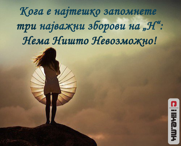 10.05.2012 /Постирано во Мисла на денот /Автор: Елизабета Илковска /Оставете коментар Кога е најтешко запомнете… Кога е најтешко запомнете… Кликнете ТУКА за да ги погледнете нашите денешни содржини. Станете наш facebook фан. Станете наш facebook фан. Ви Благодариме! « Претходно Никој не е совршен! Следно » Вистина или лага?
