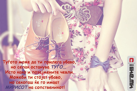 24.11.2011 /Постирано во Мисла на денот /Автор: Елизабета Илковска /Оставете коментар Туѓото останува туѓо! Туѓото може да ти прилега убаво… Кликнете ТУКА за да ги погледнете нашите денешни содржини. Станете наш facebook фан. Станете наш facebook фан. Ви Благодариме! « Претходно Не дозволувајте да ја променат Вашата насмевка! Следно » Животот е едноставна математика!