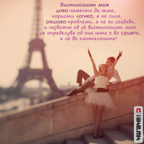 05.03.2012 /Постирано во Мисла на денот /Автор: Елизабета Илковска /1 коментар Вистинскиот маж Вистинскиот маж дава… Кликнете ТУКА за да ги погледнете нашите денешни содржини. Станете наш facebook фан. Станете наш facebook фан. Ви Благодариме! « Претходно Вчера, денес и утре… Следно » Нашата најголема грешка