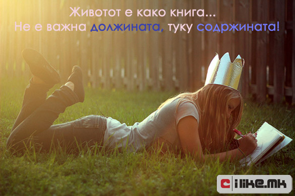 14.01.2012 /Постирано во Мисла на денот /Автор: Елизабета Илковска /1 коментар Животот е како книга Животот е како книга…. Кликнете ТУКА за да ги погледнете нашите денешни содржини. Станете наш facebook фан. Станете наш facebook фан. Ви Благодариме! « Претходно Нека не те чуди разликата… Следно » Добро е да градиш ѕидови околу себе…