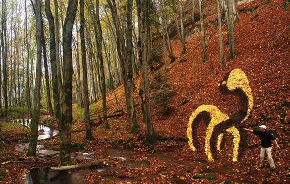 Младиот француски уметник Sylvain Meyer е творец на овие несекојдневни гигантски инсталации во шумите близу Париз. При создавање на овие дела единствено користи природни расурси, како: камења, листови во разни бои, кора од дрво, мов и слично. Во ниту една од приложените фотографии кои ќе ги видите во продолжение нема користено фотошоп.
