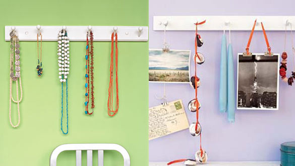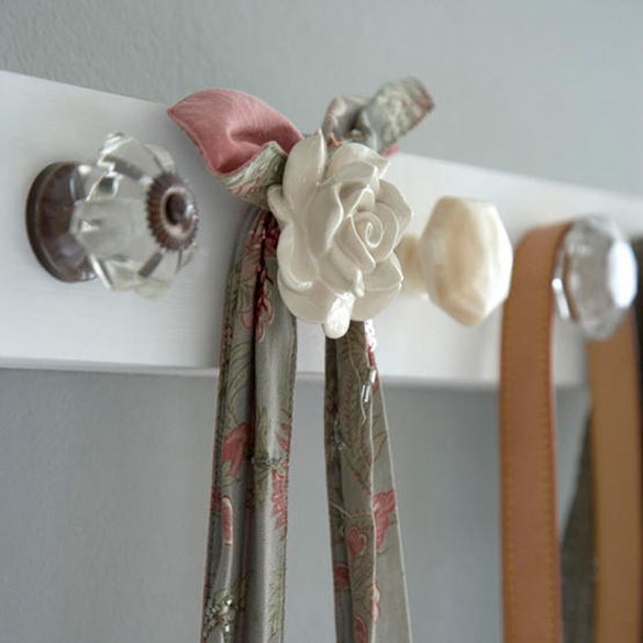 Закачалките кои ги користиме за палто, обично се поставени на внатрешната страна на врата или пак во ходник. Истите може да ги искористите креативно и во другите простории во вашата куќа и за други намени. На нив може да го чувате својот накит, своите чанти, колани, марами, во кујната може да ги употребите како држачи на шолји за кафе или пак тави, може да ја поставите даската за пеглање и може да закачите слики на нив. Погледнете колку интересно изгледа сето тоа.