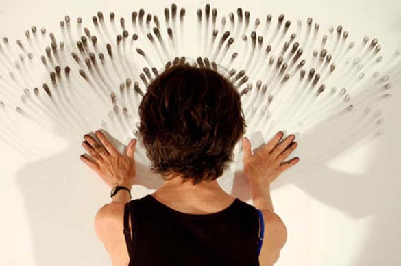 Judith Braun употребува навистина интересна и впечатлива техника во изработката на слики. Таа ги валка прстите со јаглен или пастел и прави вистински уметнички дела оставајќи траги на ѕид или на парче хартија. Погледнете го резултатот. Прекрасно!